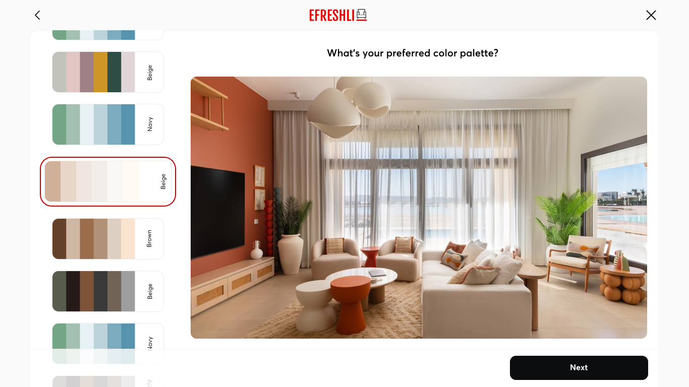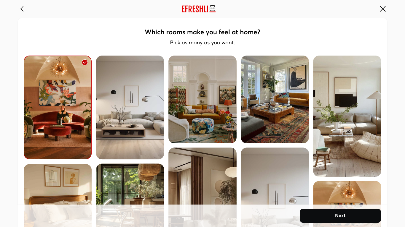 - Selected their preferred color palette, room type, and inspirations to generate a personalized style quiz result